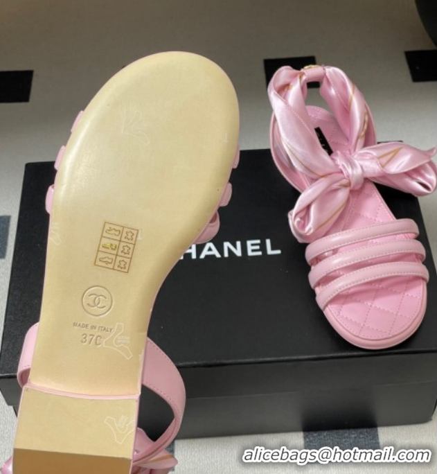 Durable Chanel Lambskin Leather & Silk Flat Sandals CH122304 Pink 2026