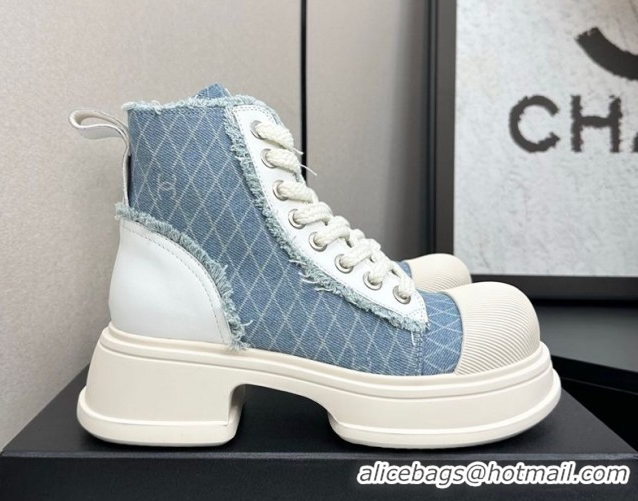 Durable Chanel Quilted Denim and Fringe High Top Platform Sneakers Light Blue 2025 CH110108