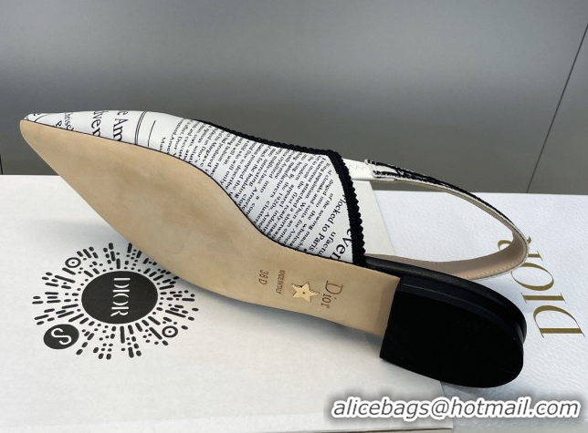 Classic Hot Dior J'Adior Slingback Ballets Flat in Calfskin Leather with White and Black Newspaper Print 2026 0302038
