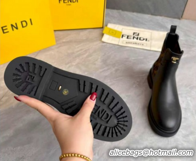 Low Cost Fendi Filo Biker Ankle Boots 3.5cm in FF Canvas and Calfskin Leather Black/Brown FE121602 2026