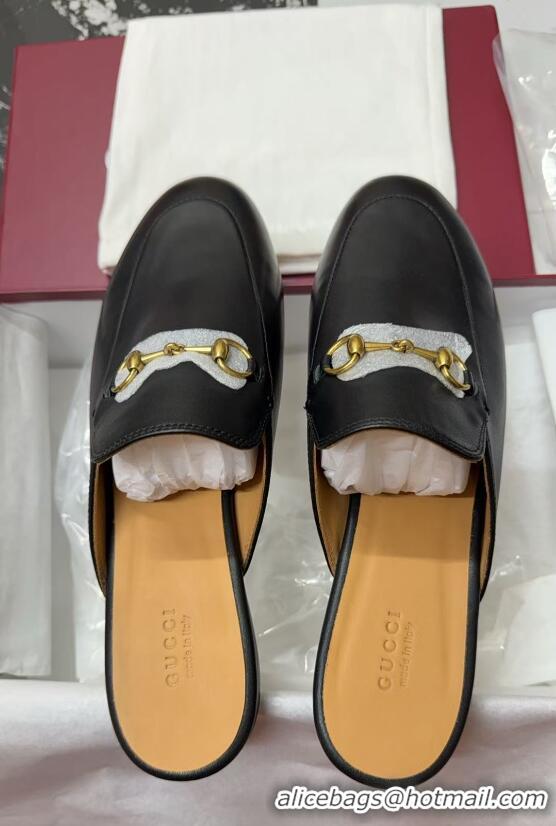 Durable Gucci Princetown Calf Leather Flat Slippers Black 2025 557730