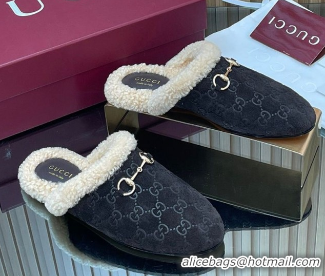 Top Design Gucci Princetown Suede and Wool Flat Loafers with Horsebit GG121802 Coffee Brown 2026