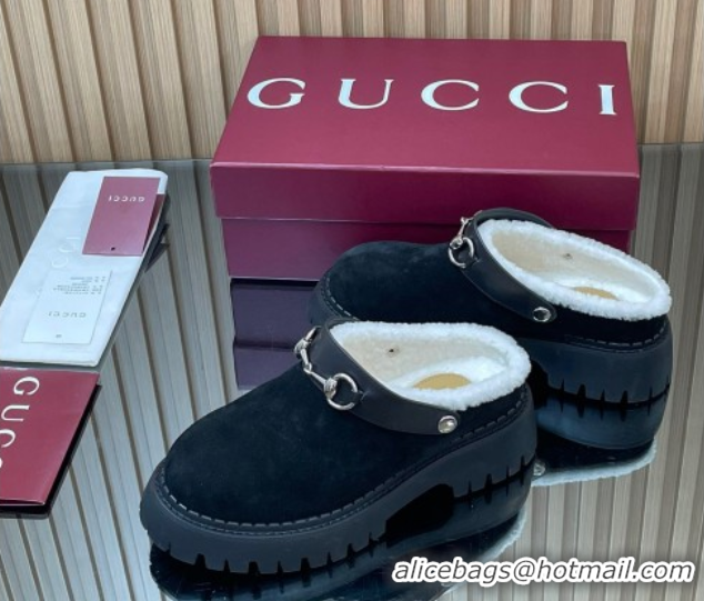 Best Quality Gucci Suede and Wool Mule with Horsebit 835829 Black 1020049