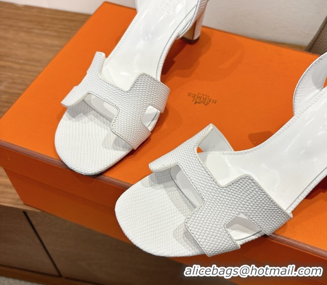 Good Quality Hermes Eremite Heel Sandals 8.5cm in Ostrich Embossed Leather White H102308 1023126