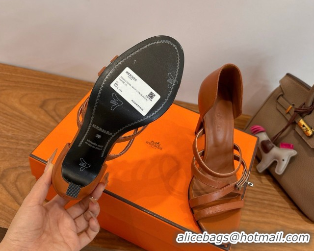 Good Quality Hermes Lipstick Heel Sandals 10.5cm with Kelly Buckle in Calfskin Leather 0304007 Brown 2026