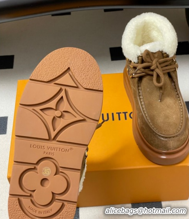 Top Grade Louis Vuitton Cortina Platform Low Boots 5cm in Suede and Wool Brown 1AIUFW 1219070