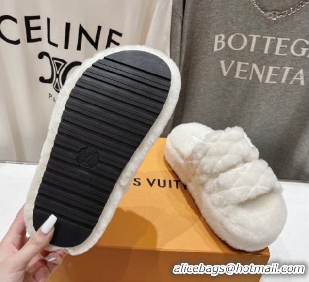 Luxurious Louis Vuitton LV Bliss Comfort Shearling Platform Slides Sandal White 2025 LV082906 0829116