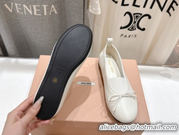 Low Cost Miu Miu Elan Nappa Leather Ballerinas Flat with Bow and Elastic Gusset White 5F552E 1025054 2025