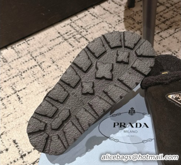 Best Product Prada Suede and Shearling Platform Mules 4cm Black 2025 PR102702 1027022