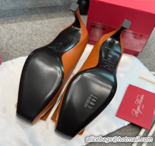 Most Popular Roger Vivier Trompette Pumps 7cm in Calf Leather with Buckle Brown 1030082