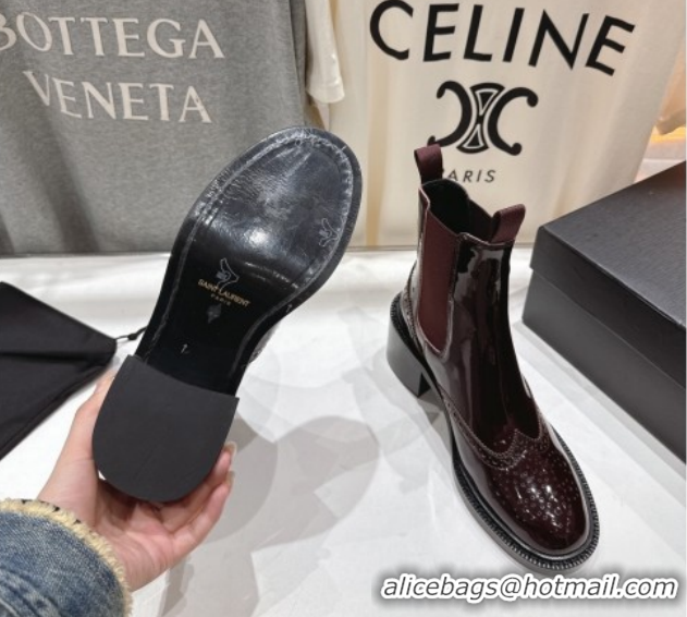 Good Product Saint Laurent Vincent Heel Chelsea Booties 6cm in Perforated Patent Leather Dark Burgundy 1213059