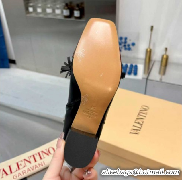 Durable Valentino VALET DU ROI Heel Ankle Boots 6.5cm in Goatskin Leather with Bow Black/Brown 1104089