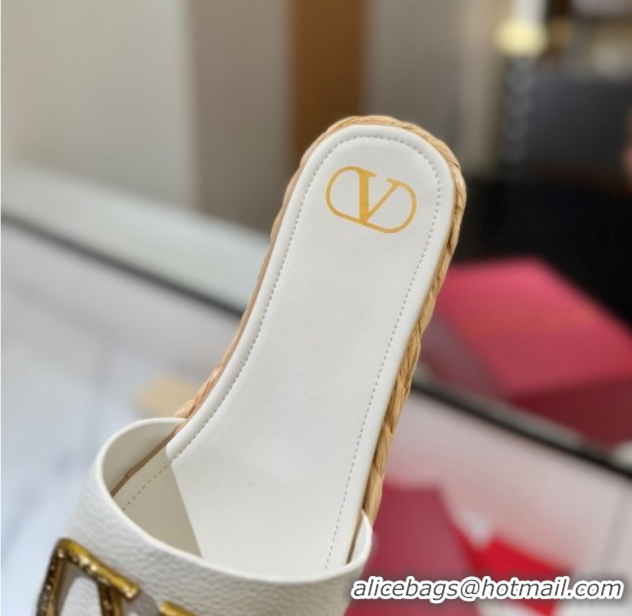 Durable Valentino VLogo Grainy Calfskin Flat Slides Sandal White/Gold 2025 VA082114 0821138