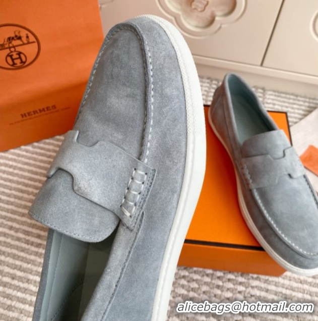 Elegant Hermes Job Loafers in Suede H090808 Blue Grey