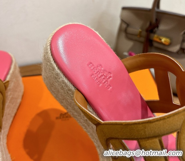 Best Luxury Hermes Lipari Wedge Slides Sandal in Suede Brown/Pink 1222097 2026
