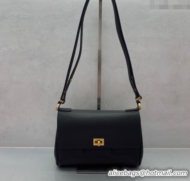 Famous Brand Balenciaga Bel Air Flap Bag XS in smooth calfskin 0926 Black/Aged Gold 2025