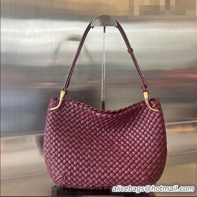Famous Brand Bottega Veneta Medium Clicker Shoulder Bag in Padded Intreccio Leather 730968 Barolo Red 2023
