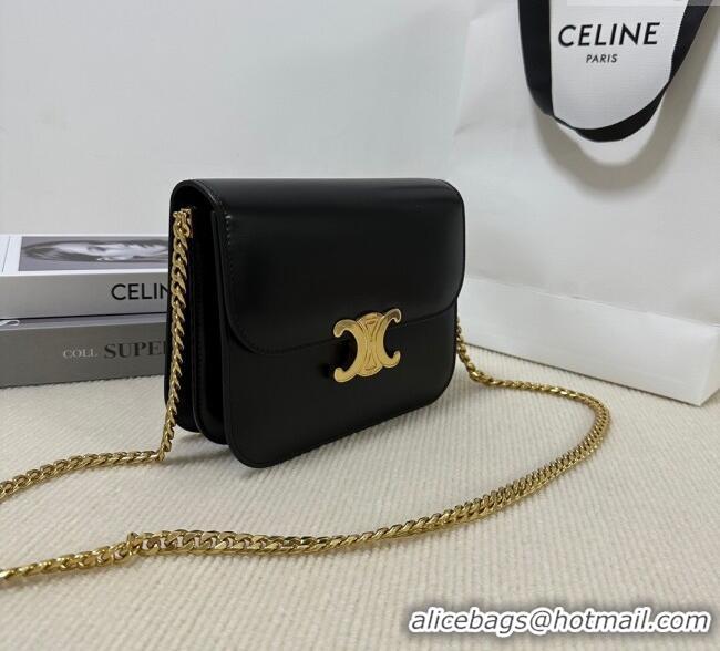 Famous Brand Celine College Triomphe Chain Bag in Calfskin Leather 113583 Black 2025