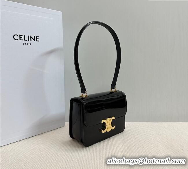 > Celine Handbags > 2024 Celine Bags > Famous Brand Celine Teen Garance Shoulder Bag in Patent Calfskin Leather 118053 Black 2024