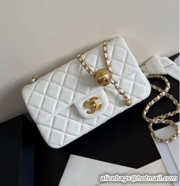 Good Quality Chanel Lambskin Leather Small Flap Bag with Metal Ball AS1787 White 2025