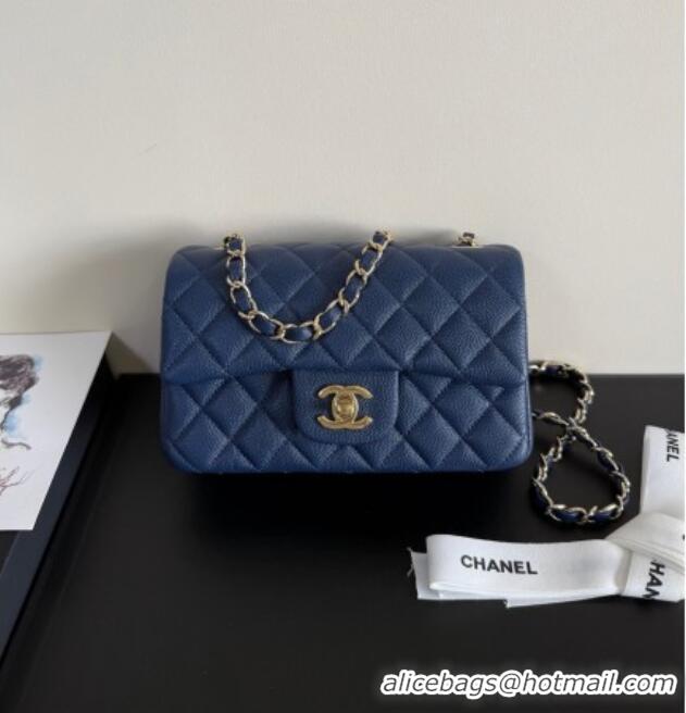 Famous Brand Chanel Pearly Caviar-Grained Calfskin Classic Mini Flap Bag A01116 Blue 2025