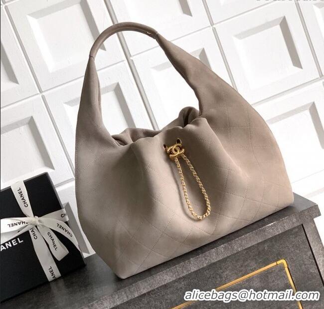 Shop Discount Chanel Suede Large Hobo Handbag AS5967 Grey 2025