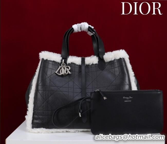 Buy Discount Dior DiorAlps Large Toujours Tote Bag in Black Macrocannage Crinkled Calfskin and White Merino Wool D2039 2