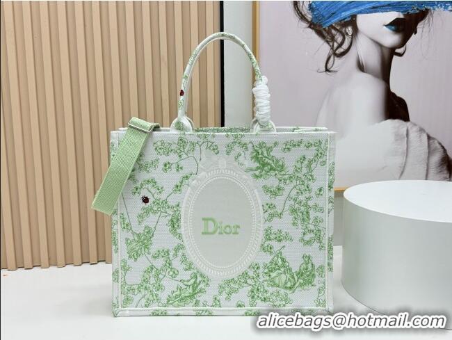 Famous Brand Dior Large Dior Book Tote with Strap D2205 Green Multicolor Toile de Jouy Clover Embroidery 2026