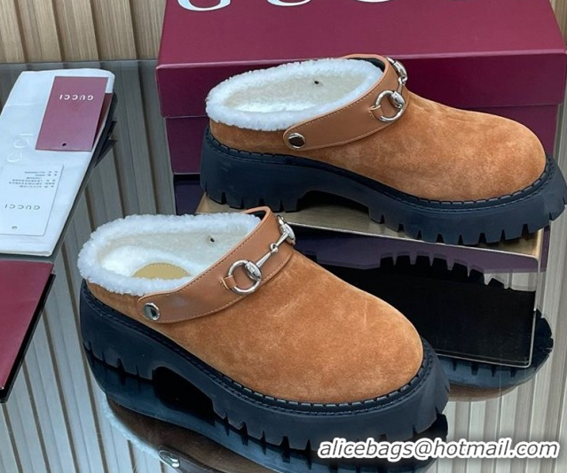 Popular Style Gucci Suede and Wool Mule with Horsebit 835829 Brown Yellow 1020052