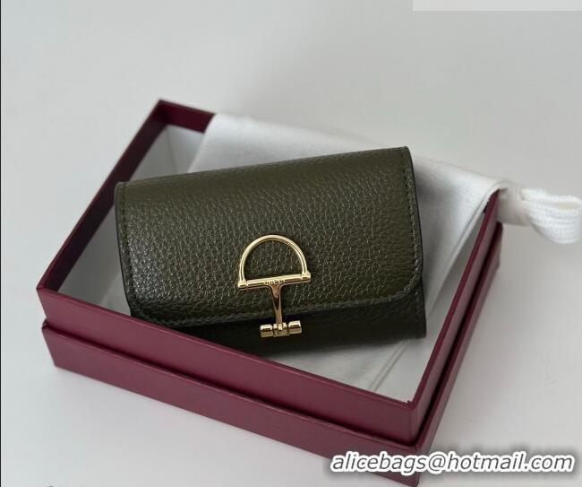 Famous Brand Gucci Softbit Leather card case with Half Horsebit 828148 Dark Green 2026