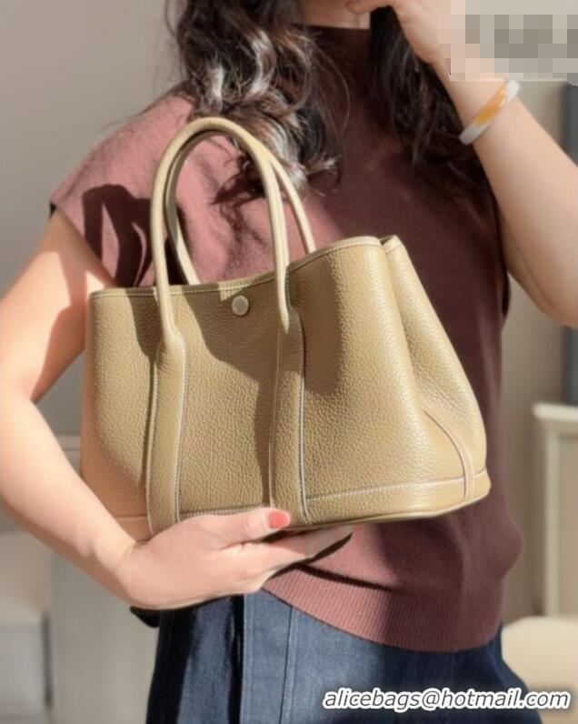 Top Grade Hermes Garden Party Bag 30cm in Grained Leather 31001 Coat Beige 2026 (Half Handmade)