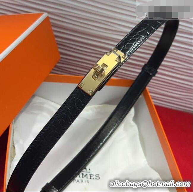 Famous Brand Hermes Kelly Duo Belt 1.8cm in Crocodile Embossed Calfskin H2010025 Black/Yellow Gold 2025