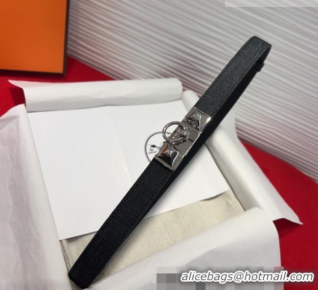 Famous Brand Hermes Rivale Denim Belt 1.8cm with Two Medor and Ring Buckle 8190 Black/Silver 2025