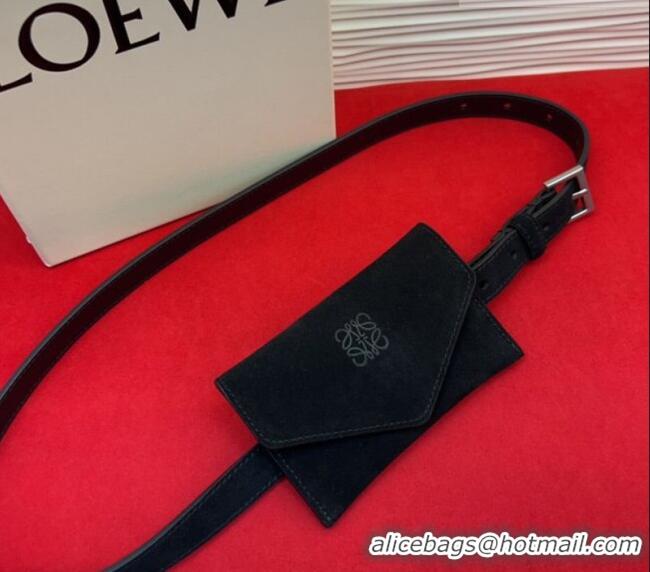 Good Quality Loewe Anagram Pouch Belt 2cm in Suede LW031702 Black 2026