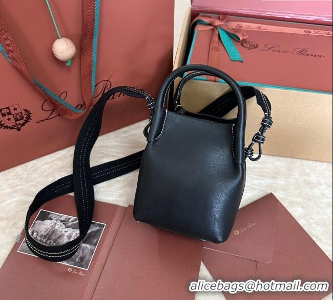 Famous Brand Loro Piana Small Bale Bucket Bag in Smooth Calfskin Leather 0925 Black 2025