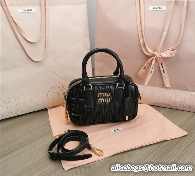 Famous Brand Miu Miu Matelasse Nappa Leather Top Handle Bag 5BB123 Black 2025