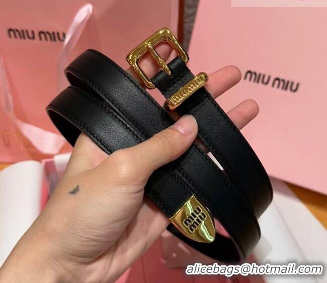 Famous Brand Miu Miu Women's Leather Belt 2cm 0617 Black/Gold 2025