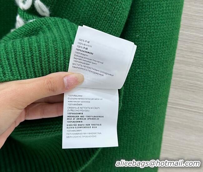 Famous Brand Prada Cashmere Cardigan with Flower Embroidery 0113 Green 2026