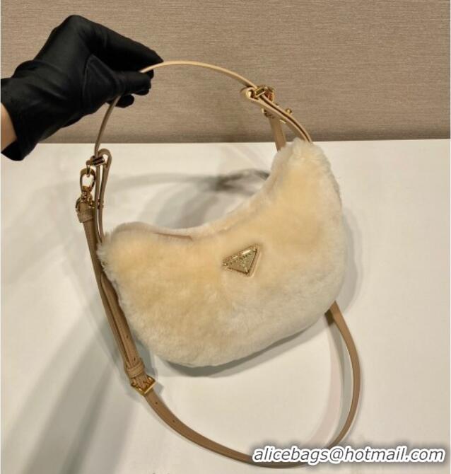 Your Position: Home > Prada Handbags > Prada 2025 Bags > Famous Brand Prada Arque shearling and leather shoulder bag 1BC194 Ecru Beige 2025