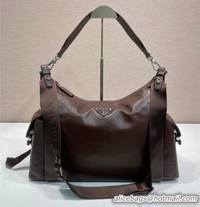 Top Grade Prada Mens Buckle Large Leather Bag with Buckle Belt 1BG126 Dark Brown 2026