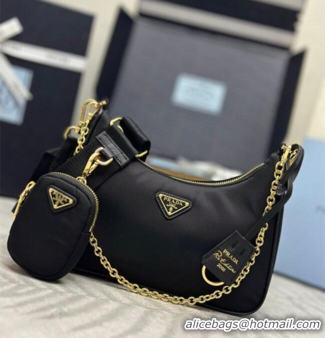 Famous Brand Prada Re-Edition 2005 Re-Nylon Bag 1BH204 Black/Gold 2026