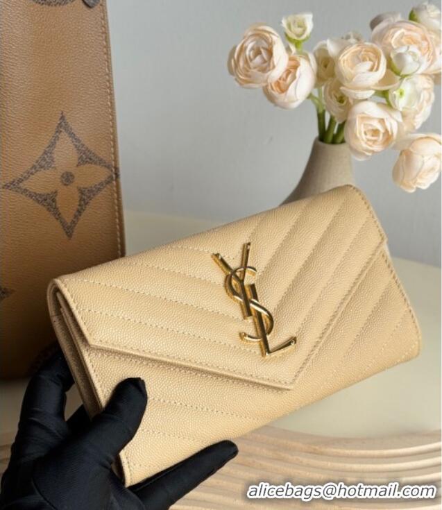 > Yves Saint Laurent Bag > Grade Design Saint Laurent Envelope Flap Long Wallet in Grained Leather 437469 Beige 2025