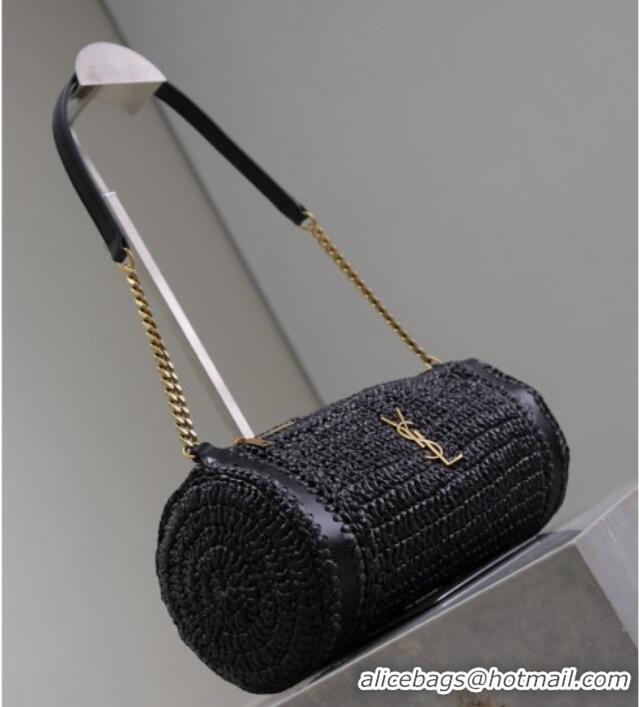 Promotional Saint Laurent Sade Mini Tube Bag in Raffia Straw 699704 Black 2025
