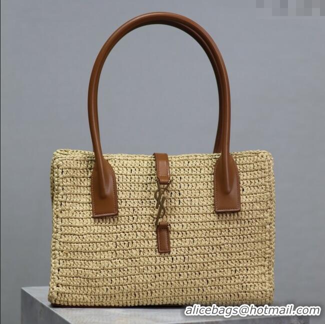 Famous Brand Saint Laurent Tote Bag in Raffia Leather 262149 Beige 2025