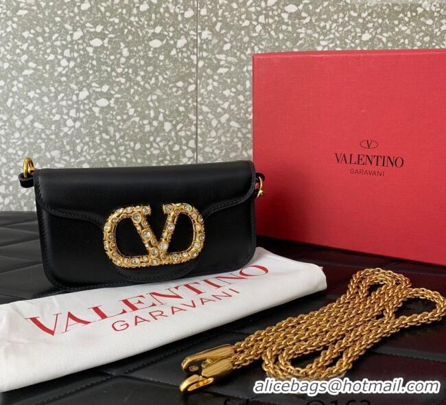 Famous Brand Valentino Loco Small Shoulder Bag in Calfskin Leather with Jewel Logo 5061 Black 2025