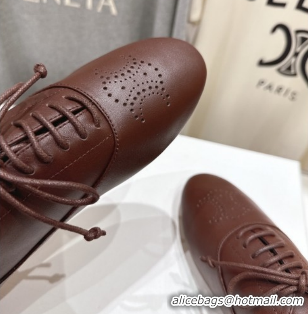 Good Product Celine Lise Perforated Triomphe Richelieu Laced-up Shoes in Calfskin Leather Brown 1209051 2026