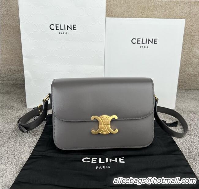 Fashion Cheap Celine Classique Triomphe Bag in Shiny Calfskin 187363 Lava Grey 2025