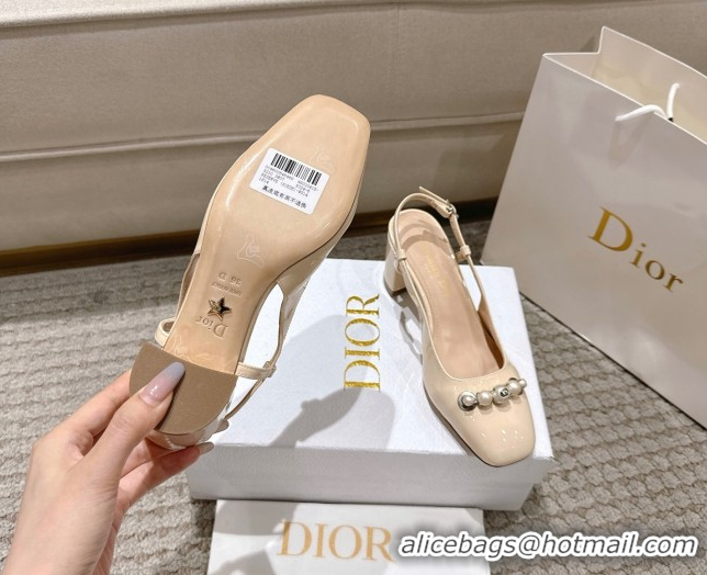 Purchase Dior Patent Calfskin Slingback Pumps 5.5cm with Pearls Nude DR082201 0822042