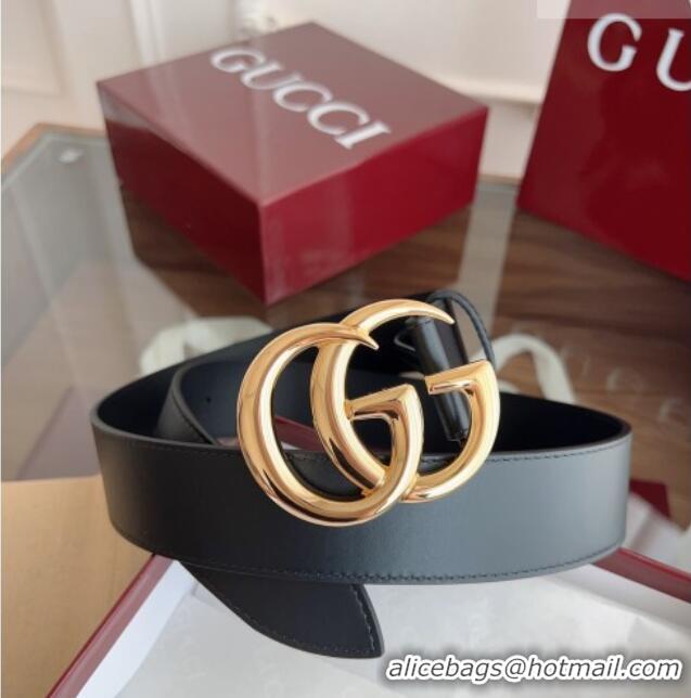 Top Grade Gucci Smooth Calfskin Belt 4cm G111733 Black/Gold 2025