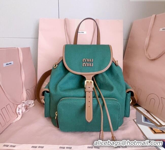 Fashion Discount Miu Miu Canvas and leather backpack bag 5BZ042 Billiard Green 2025